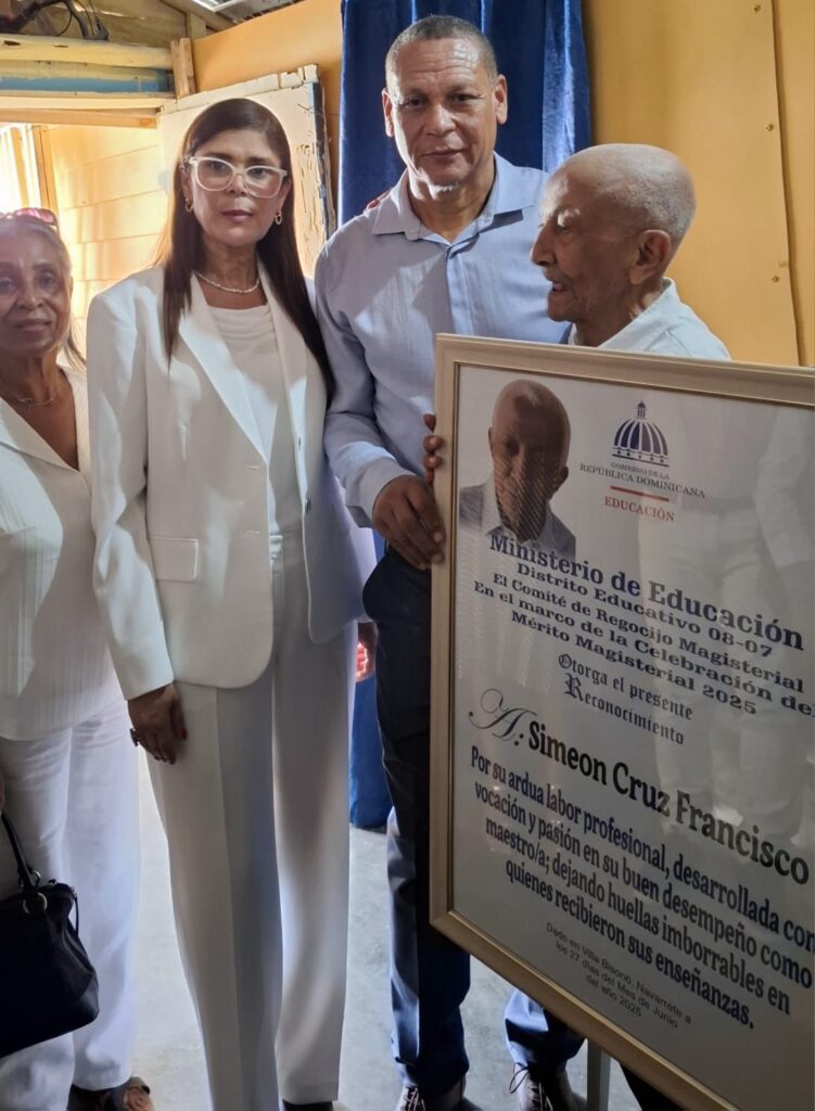 De inmediato la directora distrital Ana Jaquelin Peña Pérez acompañada del comité Magisterial, se dirigió a la residencia del maestro jubilado Simeon Cruz Francisco, para hacerle entrega de un reconocimiento especial por su labor docente.