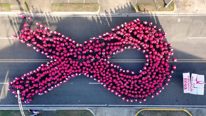 Santiago de los Caballeros, Rep. Dom.-Por décima ocasión, vestidas de rosado y unidas en cuerpo y alma, cerca de 1,000 trabajadoras del Parque Industrial Víctor Espaillat Mera (PIVEM), formaron el Gran Lazo Humano en prevención del cáncer de mama.