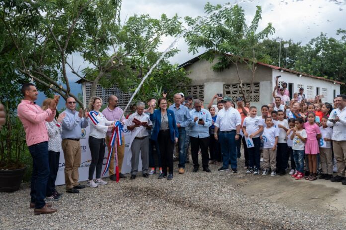 San José de Las Matas. – La Embajadora de Francia en la República Dominicana, Sonia Barbry, presidió el acto de inauguración del Acueducto Comunitario de Piedra Partida, construido por el liderazgo de esa comunidad acompañado por el Plan Sierra con fondos de la Agencia Francesa de Desarrollo,(AFD).
