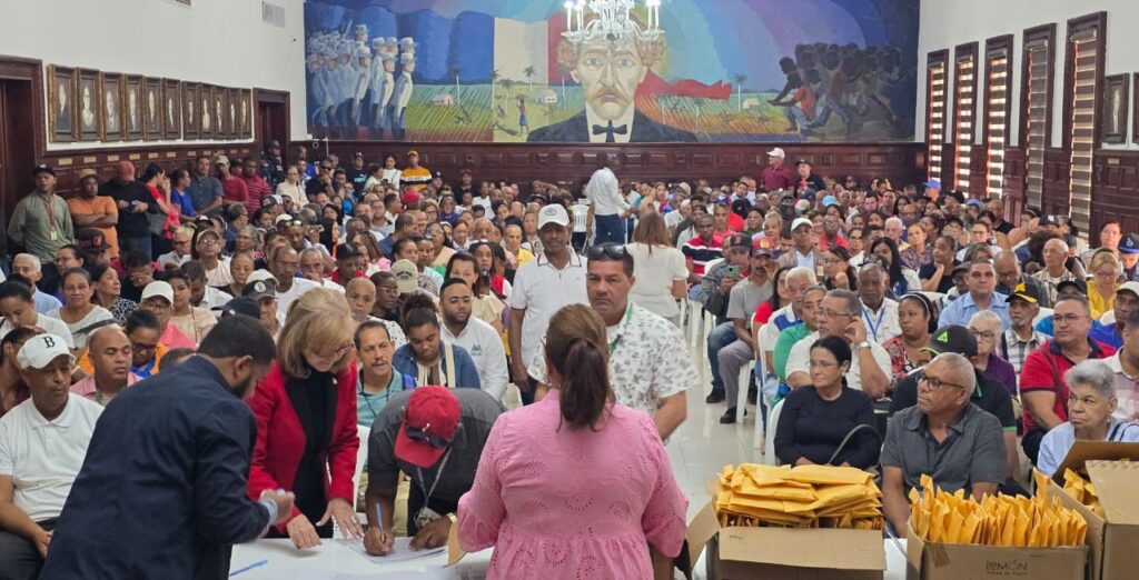 La gobernadora Santos informó que este martes se inició la entrega de la «Brisita Navideña» a más de 200 juntas de vecinos, en el salón Juan Pablo Duarte de la Gobernación Provincial.