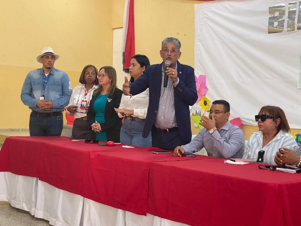El director de la Regional 08 del Minerd, Pedro Pablo Marte, motiva a estudiantes a asumir conciencia de cuidar la higiene escolar, de prevenir el uso de plásticos y otros materiales no degradables