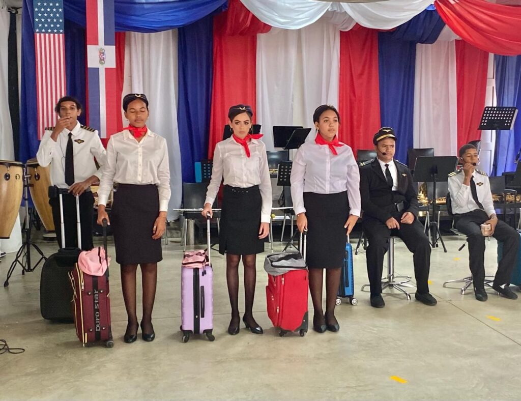 Santiago. – Estudiantes de la modalidad en Artes del Politécnico Rafael Solano, presentaron la gala de centro «Aerocultura», un viaje por la música, la pintura, el baile y distintos componentes relacionados a experiencias viajeras.