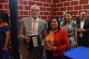 Águeda Alejo, presidenta de la ALS, estuvo presente en el acto de honra junto a miembros de su directiva, y aprovechó para felicitar al homenajeado, definiéndolo como un gran referente de la comunicación con excelencia y con valores, que pone en alto el quehacer periodístico apegado a la ética y a nuestra amada provincia de Santiago de los Caballeros.