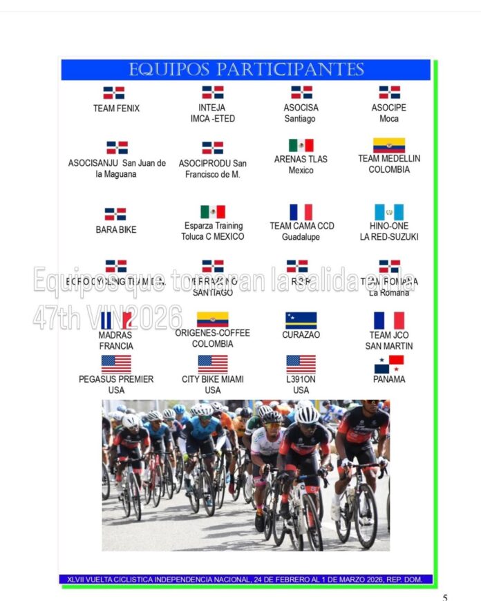 SANTO DOMINGO. – Los 24 equipos que competirán en la edición 47 de la Vuelta Ciclística Independencia Nacional están listos para la apertura este martes 24 de la justa que organiza la Federación Dominicana de Ciclismo (FEDOCI).