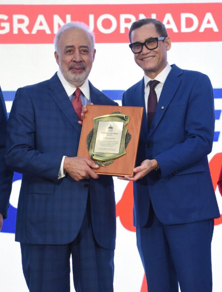 Durante esta segunda edición de “Tu Empleo Está Aquí”, el Ministerio de Trabajo reconoció al empresario Félix García por su trayectoria y aportes al progreso de Santiago.