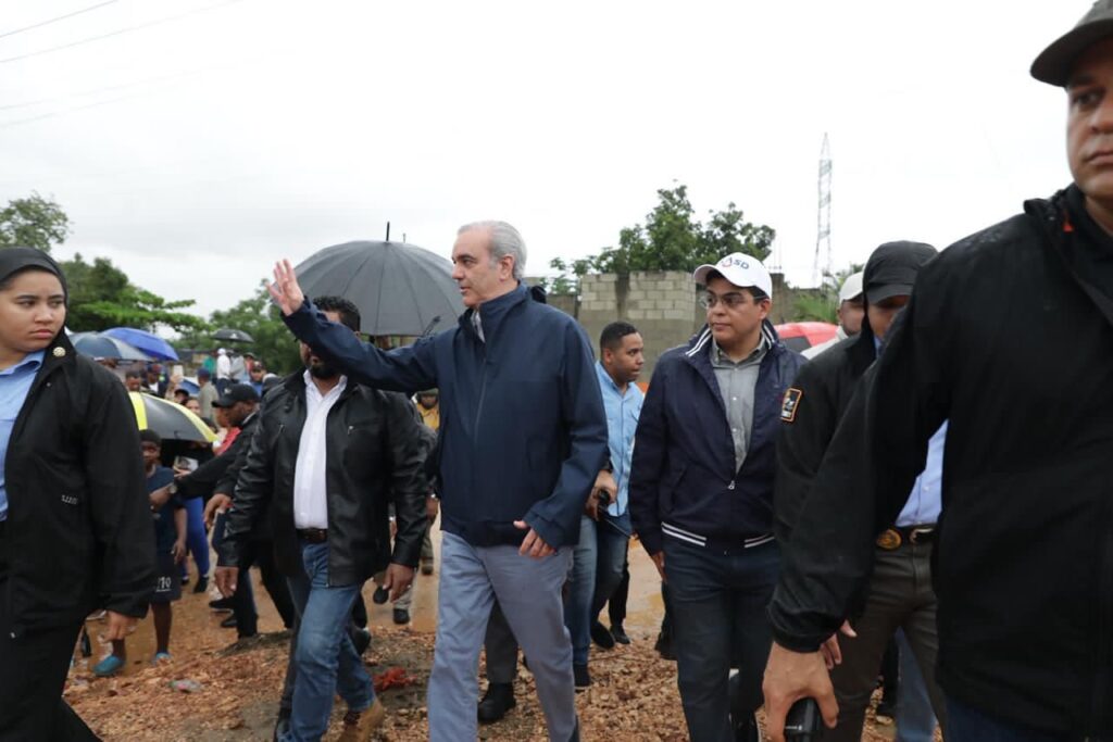 Presidente Abinader supervisa funcionamiento de la cañada saneada por el Gobierno, en visita al distrito municipal Villa Linda-Palmarejo, para conocer realidad tras lluvias