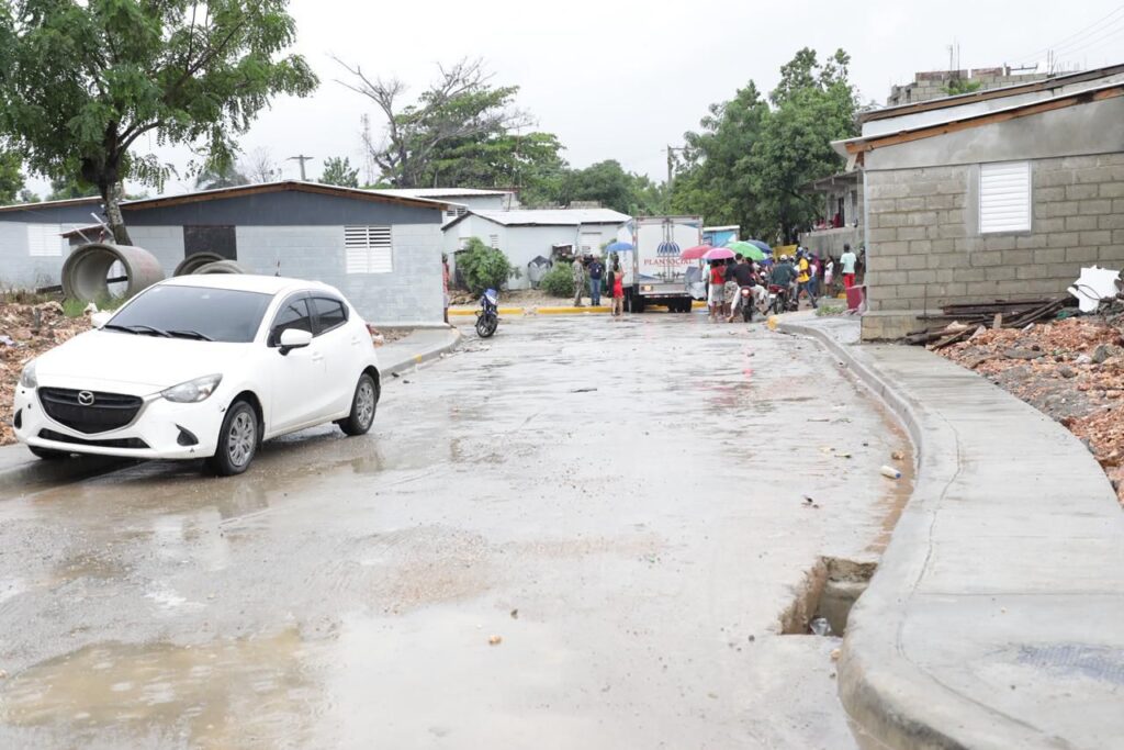 El presidente Abinader anunció que inmediatamente se concluya el proceso de saneamiento se iniciará el asfaltado del sector, para lo que dio instrucciones al ministro de Obras Públicas, Eduardo Estrella.