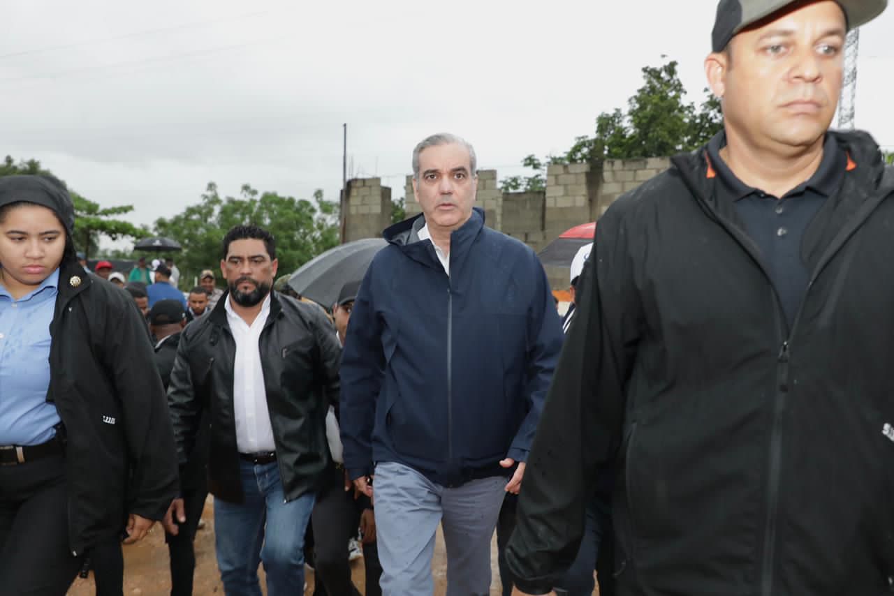 Presidente Abinader supervisa funcionamiento de la cañada saneada por el Gobierno, en visita al distrito municipal Villa Linda-Palmarejo, para conocer realidad tras lluvias
