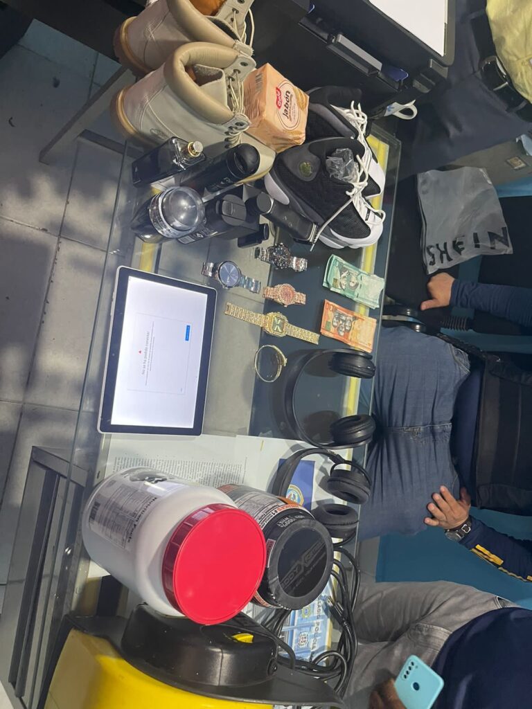 Las detenidas son Yvelys Peralta y Perla López Toribio, en cuya residencia se ocuparon una tablet, relojes, audífonos, perfumes, entre otros objetos, que habían sido sustraídos por el prófugo Juan Carlos Castillo Peralta, apodado “Tin”, quien logró escapar en momento de la pesquisa.