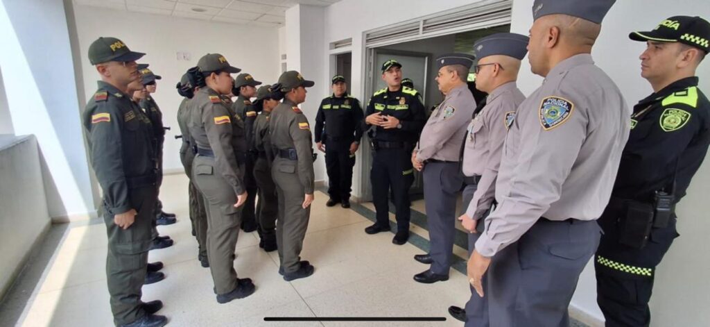La agenda incluyó una visita a la Estación de Policía Laureles, donde fueron recibidos por el brigadier general William Castaño Ramos, comandante regional de la Policía de Colombia.