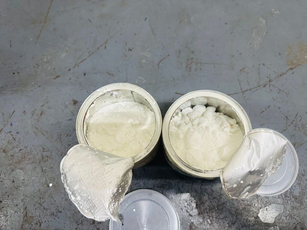 En presencia de un fiscal, se inició una primera inspección, descubriendo en el interior de una caja, dos latas que simulaban ser de leche, rellenas de cocaína, con un peso superior a los 800 gramos.