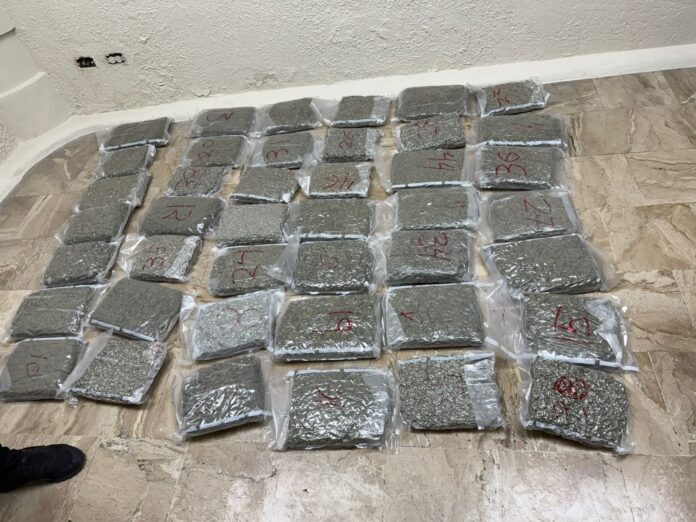 Por instrucciones del fiscal, se abrió el bulto, ocupando dentro un total de 42 paquetes de presunta marihuana, envueltos en fundas plásticas y empacados al vacío, con un peso preliminar de 62 libras.