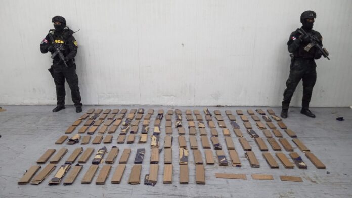 En presencia de un fiscal se procedió a abrir el contenedor, cargado de bananos, en cuyo interior se ocuparon 111 cajas de cartón, conteniendo un doble fondo en los laterales, con 663 láminas, con un peso total de 83.25 kilogramos de cocaína, según el análisis del Instituto Nacional de Ciencias Forenses (INACIF).