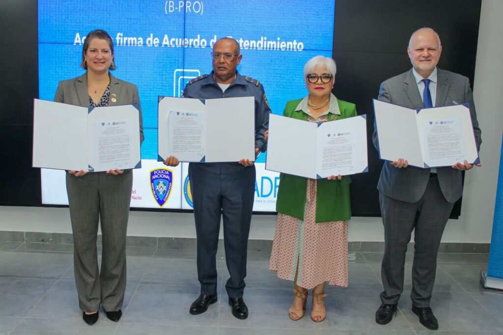 Santo Domingo. -La Policía Nacional, la Fundación Panamericana para el Desarrollo (PADF), por sus siglas en inglés, la Agencia Internacional de Asuntos Antinarcóticos y Aplicación de la Ley (INL) y la Comisión Técnica para la Reestructuración del Sistema Educativo Policial, firmaron un acuerdo de entendimiento en el que se comprometen a unir esfuerzos en la implementación y ejecución del proyecto “Mejorando la preparación policial en el Caribe” (B-PRO).