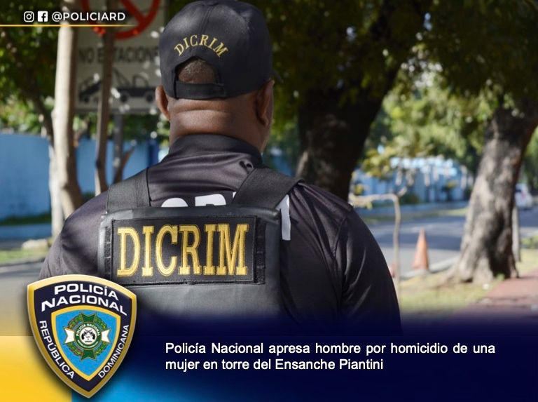 Santo Domingo RD. – La Policía Nacional informó hoy que apresó a un hombre que le quitó la vida a una mujer, cuyo cuerpo fue encontrado mutilado en una torre en el Ensanche Piantini del Distrito Nacional, donde le fue ocupada una pistola con la cual cometió el hecho, tres armas blancas, drogas, celulares y otras evidencias.