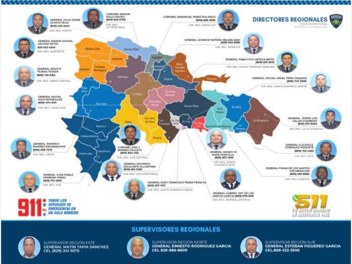 La Policía Nacional puso en circulación hoy un mapa interactivo que permite a la ciudadanía identificar y contactar de manera directa a los 19 directores regionales responsables de la seguridad en todo el territorio nacional, como parte de su estrategia de transparencia, proximidad y fortalecimiento del servicio durante el asueto de Semana Santa 2026.