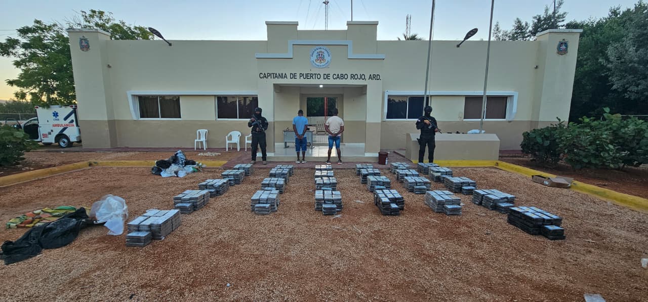 Luego de más de 15 horas de intenso seguimiento, las unidades aéreas, marítimas y terrestres interceptaron, a varias millas náuticas al sur de Cabo Rojo, una embarcación sin nombre ni matrícula, con dos dominicanos a bordo, ocupando 26 sacos que contenían un total de 863 paquetes de la presunta droga, forrados con cinta adhesiva y con distintos logotipos.