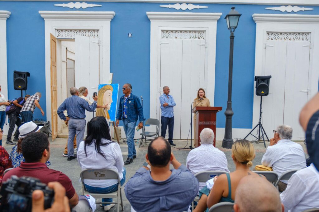 “Me place compartir con ustedes: artistas, pintores, gestores culturales, porque el arte y la cultura son el alma de nuestros pueblos. Y si hay un lugar que ha marcado pautas y que defiende su identidad más allá de los años que tengamos fuera de nuestra tierra natal, ese es Santiago”, dijo Carolina, al recordar que nació en la clínica Corominas de esta ciudad, en las manos del conocido médico Josecito Herrera.