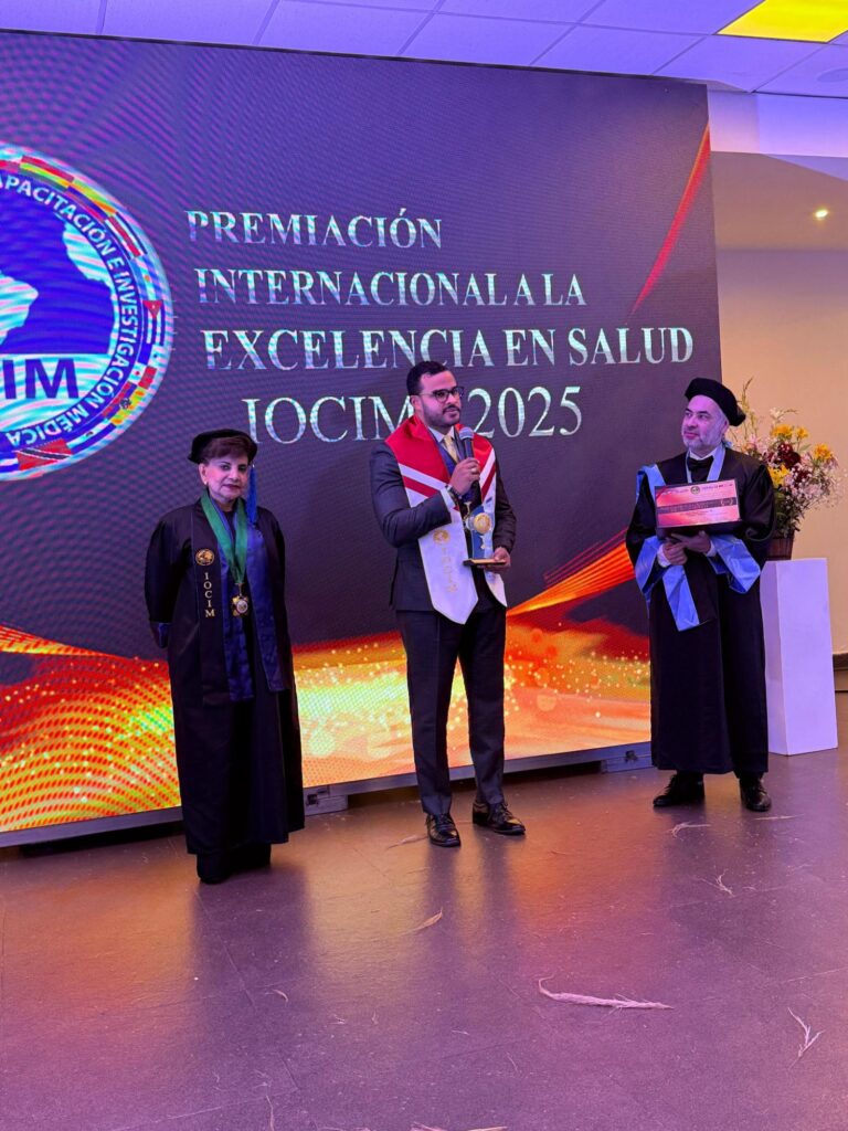 Su labor fue distinguida por IOCIM con el “Premio al Médico por Logros en Pro de una Vida Mejor”, galardón que resalta su excelencia profesional, su dedicación y la profunda humanidad con la que ejerce.