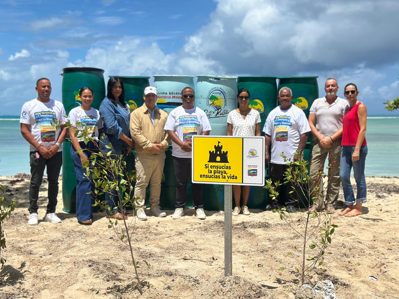 La Asociación para el Desarrollo de Punta Rucia (ADEPUR), en coordinación con la Alcaldía del distrito municipal de Estero Hondo, dio inicio a la campaña “Una playa limpia se disfruta más”, mediante la donación de 40 tanques para basura y la colocación de mensajes educativos en señaléticas, como parte de su primera fase.